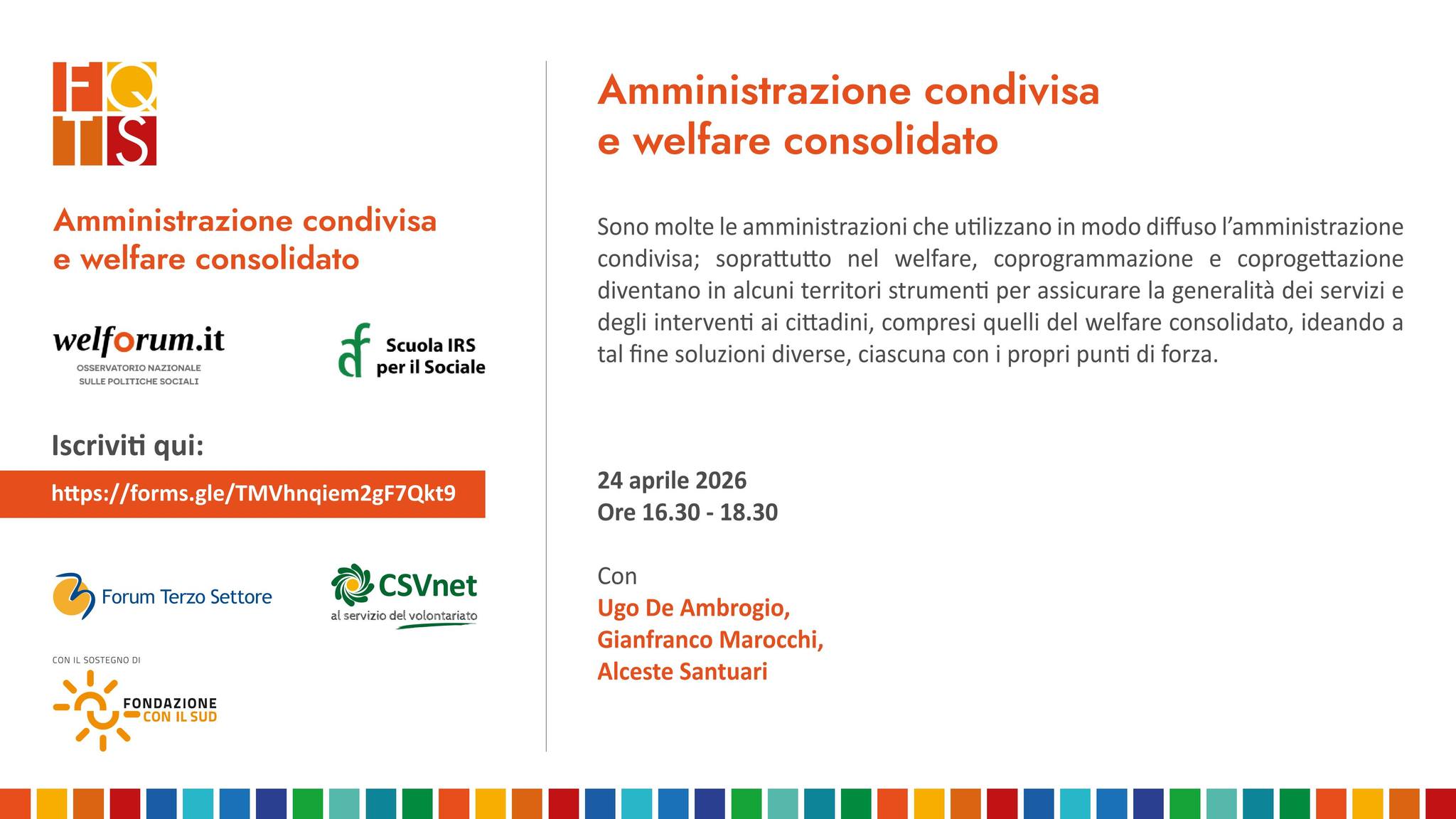 È prevista l’erogazione di CREDITI ECM; ASSISTENTI SOCIALI interessati ai crediti formativi sono pregati di SCRIVERCI UNA MAIL. Per maggiori informazioni su costi e orari scaricate il programma ed iscrivetevi entro il 10 maggio 2026.